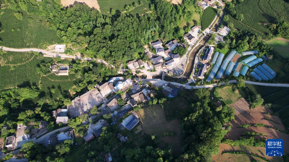 7月14日拍攝的青泥嶺腳下的青泥村(無(wú)人機(jī)照片)。新華社記者 陳斌 攝