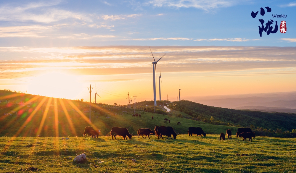 廣闊的牧場,一望無垠。綠油油的牧草覆蓋整片天地,宛如一片綠色的海洋。草原上游走的牛羊,與天空浮云、遠景的群山、矗立的風力發(fā)電機交相輝映,極目遠望、蔚為壯觀,構(gòu)成關(guān)山古道一道靚麗風景線。