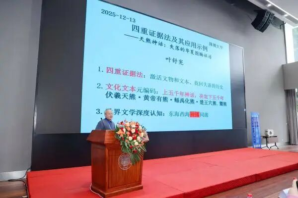 2025年12月13日,在深圳大學召開的第九屆中國學術(shù)評價論壇上,上海交通大學文科資深教授葉舒憲提出的“四重證據(jù)法”入選中國哲學社會科學10個原創(chuàng)研究方法(征求意見中)。“四重證據(jù)法”主要涉及歷史學、語言文學、社會學等學科,為人文學科提供了一套突破性的方法論體系,成功推動了跨學科融合,為構(gòu)建中國自主知識體系提供了重要研究方法,充分體現(xiàn)了上海交通大學人文社科“立足傳統(tǒng)、面向未來”的學術(shù)追求,彰顯了上海交通大學新文科建設(shè)持續(xù)發(fā)力、人文學院文脈傳承和繁榮發(fā)展的卓越成效。
