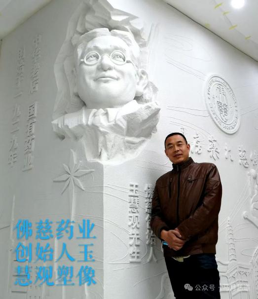 2020年所作,巧妙融圓雕與浮雕于一體,在轉(zhuǎn)角處營(yíng)造頭像破壁而出的視覺(jué)詩(shī)意。分體制作,嚴(yán)絲合縫,最終以真石漆噴砂成色,莊重中見(jiàn)靈動(dòng),至今仍是馬先生時(shí)常駐足回望的滿意之作。