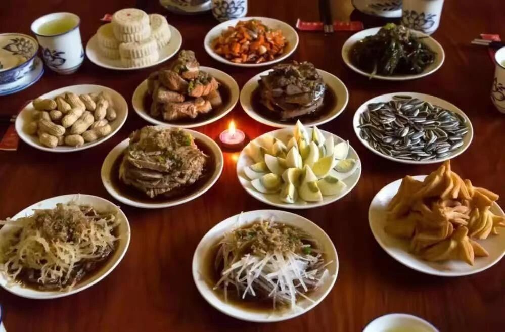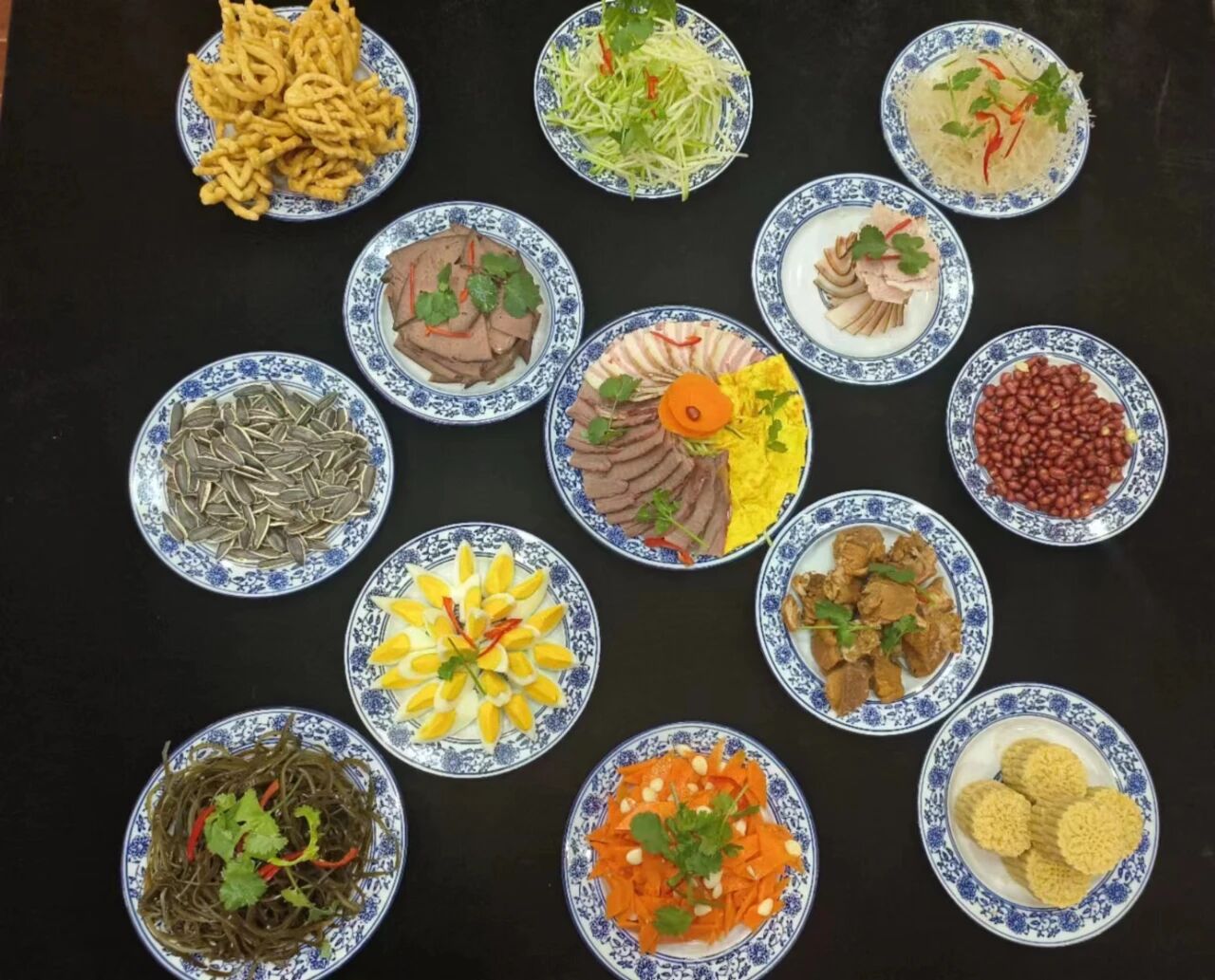 ——“十三花”,寓意胡太后以民為本的執(zhí)政理念;城內(nèi)四個葷菜,寓意人民四季安康、幸福美滿;骨頭碟和懸肉碟,寓意父骨母血、尊老孝親;肝子碟和雞蛋碟,寓意肝膽相照、心心相?。凰膫€水菜碟子水圍城,寓意順風(fēng)順?biāo)?、四方平安;城外瓜籽花生碟,寓意多子多福、多祿多壽;路食和果子,寓意衣豐食足、一路平安;最中間一個大碟全盤為中心,寓意團結(jié)聚力、天下一心。