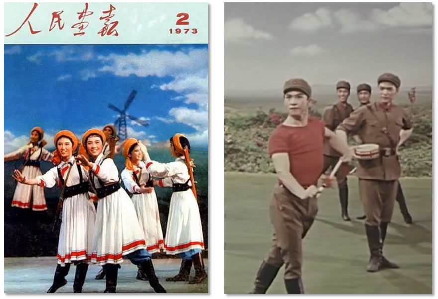 軍旅文藝作品在20世紀(jì)70年代迎來了創(chuàng)作高峰期,涌現(xiàn)了《草原女民兵》《戰(zhàn)馬嘶鳴》等一大批經(jīng)典作品,這與當(dāng)時(shí)特殊的歷史背景密切相關(guān)。“大約從70年代起,中國的舞蹈創(chuàng)作出現(xiàn)了一個(gè)稍稍活躍的狀態(tài)。為了歌頌新生活,也為了活躍舞臺,一些編導(dǎo)被先期‘解凍’,可以有限度地回到工作崗位上來。”人民軍隊(duì)與人民群眾需要通過文藝作品這一宣傳媒介,加強(qiáng)軍民一家親的情感聯(lián)結(jié),以此維護(hù)社會(huì)穩(wěn)定、軍民團(tuán)結(jié)。