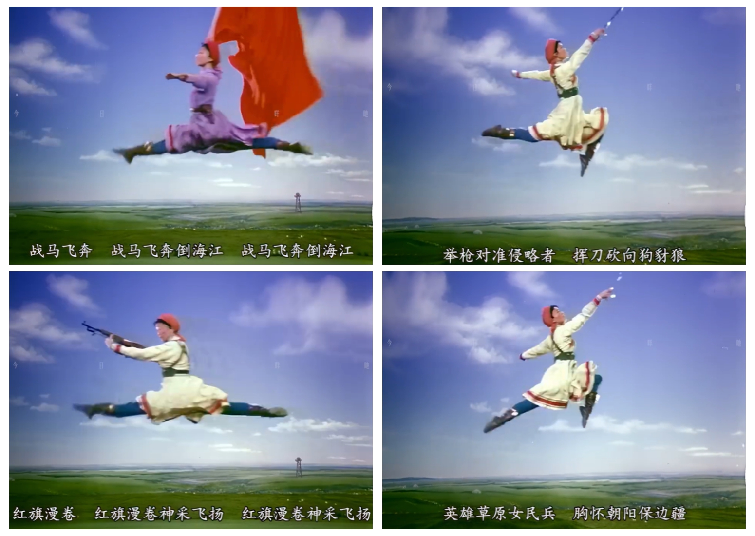 這并非虛構(gòu)的圖景,而是源自錫林郭勒草原的真實印記。1970年,帶著“到草原看真正的馬與女民兵”的想法,編導(dǎo)黃伯壽、梁文綰等深入牧區(qū)一個多月,將北京知青連長“躍馬遠射、藏身馬腹”的矯健身姿,與蒙古牧人的豪邁、知青的堅韌一同采擷為創(chuàng)作素材,又融合賈作光《牧馬舞》中“勒馬翻身”的經(jīng)典語匯,為舞蹈注入了靈魂 。舞臺上的每一個動作,都凝結(jié)著文工團少女們的千錘百煉:每日清晨五點半的軍號、繞軍區(qū)大院的晨跑、浸透練功服的汗水,將十幾歲的青春擰成紀律與柔美交織的繩——既有“召之即來,來之能戰(zhàn)”的鏗鏘,亦有少女對美的執(zhí)著向往。