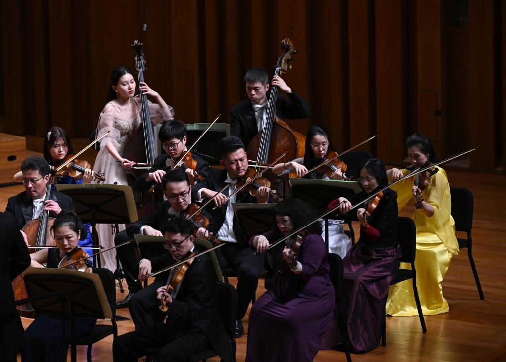 1月15日拍攝的音樂會現(xiàn)場。當(dāng)日,作為中國交響樂團(tuán)2022音樂季開幕演出,“歡樂頌”新春音樂會在北京國家大劇院舉行。新華社記者金良快攝