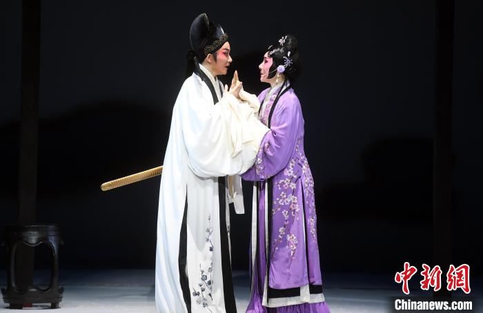 在劇中,唐琬由國家一級演員鄭全(右)飾演,陸游則由中國戲劇梅花獎得主陳麗宇(左)飾演。 記者劉可耕 攝