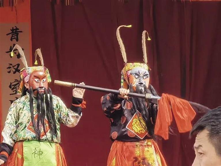 隴南市武都魚龍鄉(xiāng)陽(yáng)山村高山戲又稱“演故事”“走過場(chǎng)”等,發(fā)源于隴南武都高山地區(qū),是從隴南當(dāng)?shù)氐拿耖g祭祀活動(dòng)和傳統(tǒng)社火中孕育、演變而來(lái)的戲曲劇種。高山戲演出程式多種多樣,語(yǔ)言生動(dòng)活潑、幽默詼諧,2008年被列入第二批國(guó)家級(jí)非物質(zhì)文化遺產(chǎn)保護(hù)名錄。停止演出近20年后,在當(dāng)?shù)匚幕鞴懿块T的大力支持下,2022年正月陽(yáng)山村恢復(fù)了高山戲的演出。