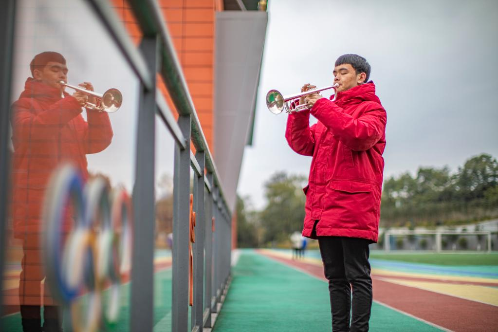 改編后的國際殘奧委會(huì)會(huì)歌,引子是由小號奏出高亢嘹亮的號角。小號手王太樊,吹響了第一聲旋律。他和盲童小伙伴們,用音樂“看見”了世界,也讓世界看到他們。