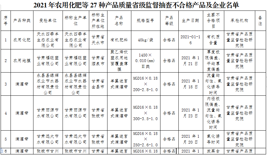 2021年農(nóng)用化肥等27種產(chǎn)品質(zhì)量省級(jí)監(jiān)督抽查不合格產(chǎn)品及企業(yè)名單(點(diǎn)擊下載)