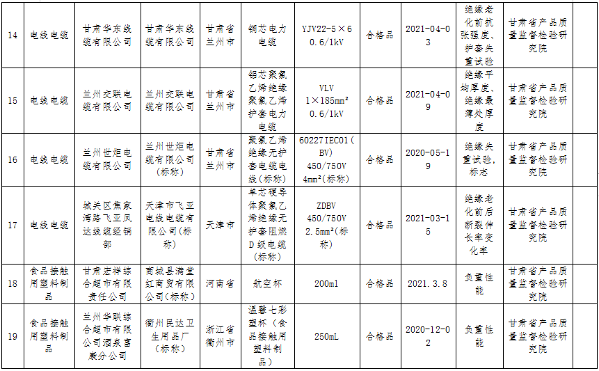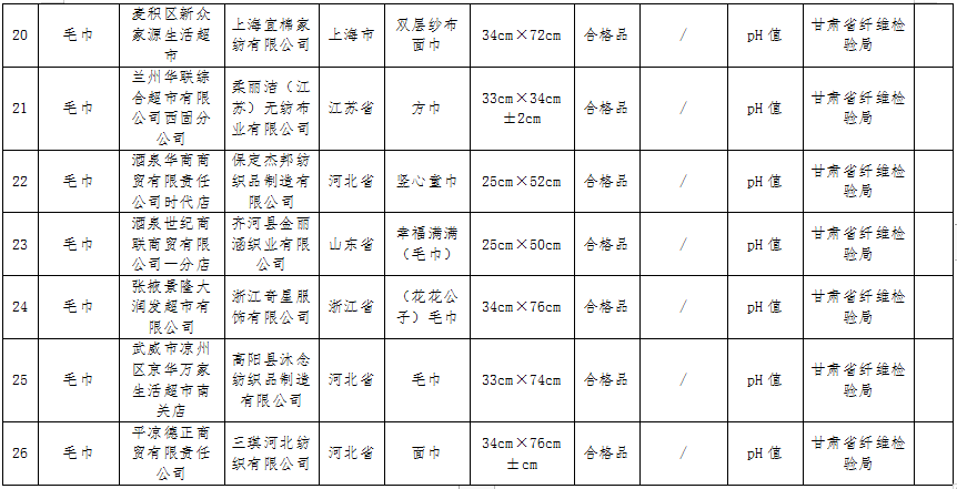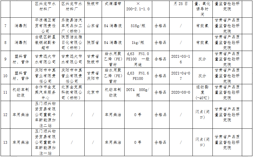 甘肅省市場(chǎng)監(jiān)管局公布26批次不合格產(chǎn)品抽檢情況