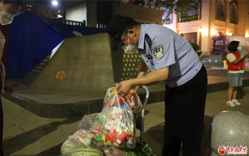 在安寧西路派出所轄區(qū)一處疫情高風險小區(qū),李東輝擔負起了入口值守和物資轉運工作,每天值守至少12小時,實行“白+黑”24小時倒班模式。李東輝對群眾訂購的物資逐一進行核對登記,保證種類數(shù)量齊全,隨后進行消殺,再按照訂單先后順序轉運至小區(qū)門口。物資運送時時都有,李東輝總是從白天忙到深夜。