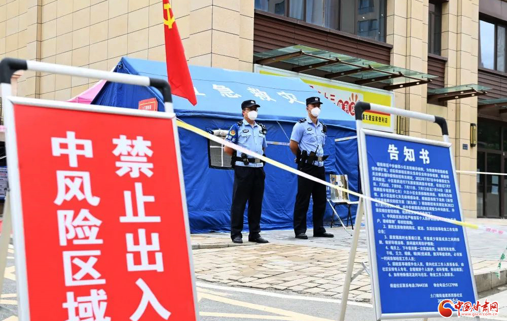七里河分局民警在隔離小區(qū)外24小時堅(jiān)守執(zhí)勤。張軍揚(yáng)/攝