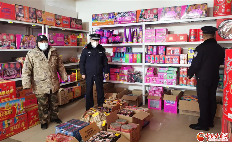 鎮(zhèn)原縣公安局城關(guān)派出所民警對轄區(qū)煙花爆竹銷售點、儲存庫區(qū)開展安全檢查