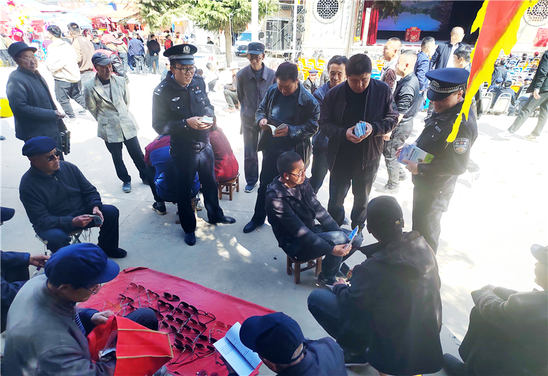 據(jù)悉,開春以來,甘谷縣鄉(xiāng)村群眾活動多種多樣,各基層派出所民警也隨著群眾活動的開展“忙”了起來,結(jié)合“三抓三促”行動工作,深入群眾中間,利用鄉(xiāng)村廟會、鄉(xiāng)鎮(zhèn)集會、游園賞花等人流量較多的有利時(shí)機(jī),積極開展宣傳活動。