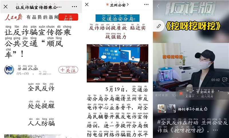 反電詐宣傳專班利用多媒體平臺(tái)錄制反電詐版“挖呀挖”,在各媒介平臺(tái)進(jìn)行了展播,廣大民輔警實(shí)時(shí)瀏覽并積極轉(zhuǎn)發(fā)。同時(shí),在中央及省市媒體廣泛刊發(fā)“五一”小長假反詐宣傳不放假、讓反詐騙宣傳搭乘公共交通“順風(fēng)車”、全警參與、協(xié)同互動(dòng),讓蘭州市公安局交通治安分局防范電信網(wǎng)絡(luò)詐騙宣傳工作再發(fā)力。