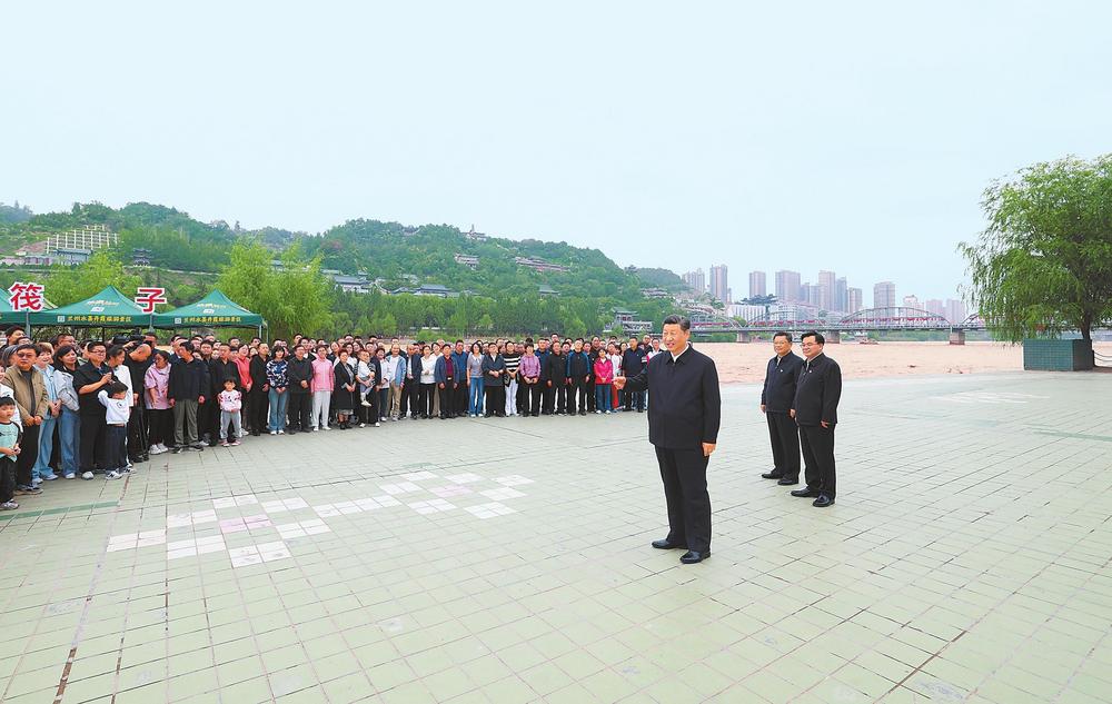 9月10日至13日,中共中央總書記、國家主席、中央軍委主席習(xí)近平在甘肅考察。這是11日下午,習(xí)近平在黃河蘭州中山橋段考察時,同在場的干部群眾親切交流。新華社記者王曄