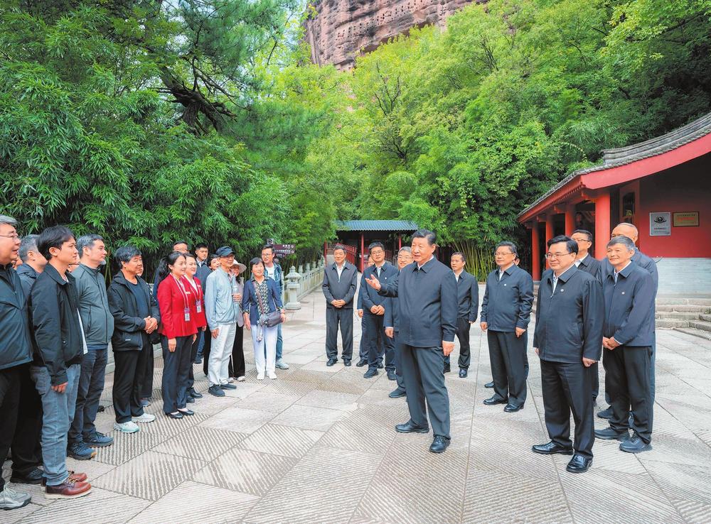 9月10日至13日,中共中央總書(shū)記、國(guó)家主席、中央軍委主席習(xí)近平在甘肅考察。這是11日上午,習(xí)近平在天水市麥積山石窟考察時(shí),同現(xiàn)場(chǎng)游客親切交流。新華社記者翟健嵐