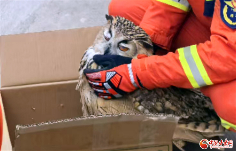 經(jīng)工作人員辨認(rèn),該鳥(niǎo)類為雕鸮,屬國(guó)家二級(jí)保護(hù)動(dòng)物,經(jīng)檢查該雕鸮無(wú)外傷,符合放生條件,遂將其帶到安全區(qū)域后放回了大自然。