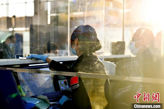 2024年11月7日,蘭州邊檢站執(zhí)勤民警驗(yàn)放國際航班旅客。王翔宇 攝