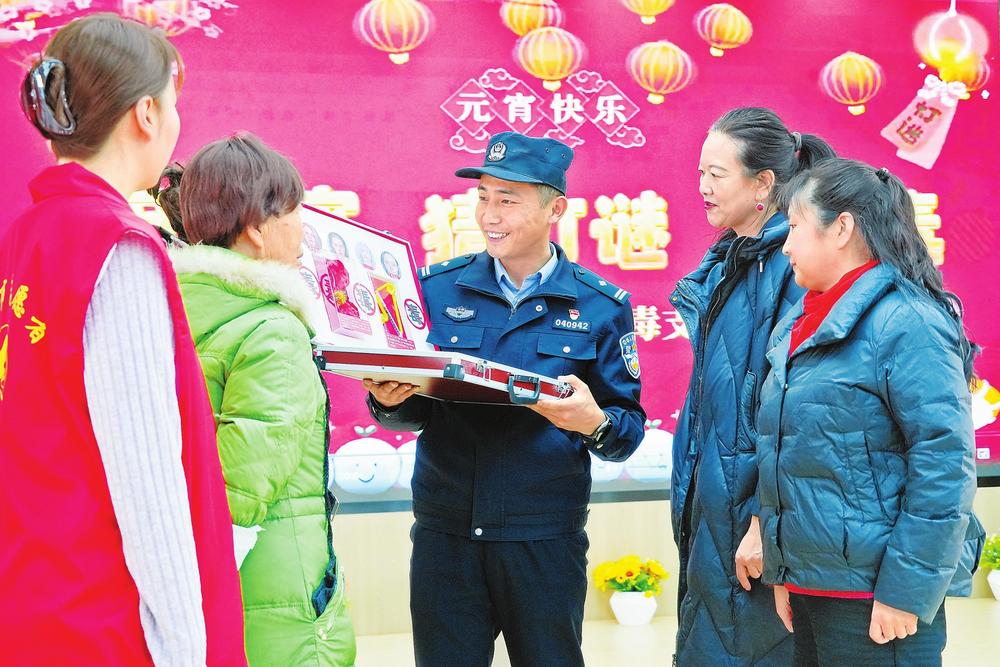 2月11日,金昌市公安局禁毒支隊聯(lián)合金川區(qū)桂林路街道寶林里社區(qū)開展“鬧元宵猜燈謎共禁毒”主題宣傳活動。新甘肅·甘肅法治報通訊員張宏斌攝