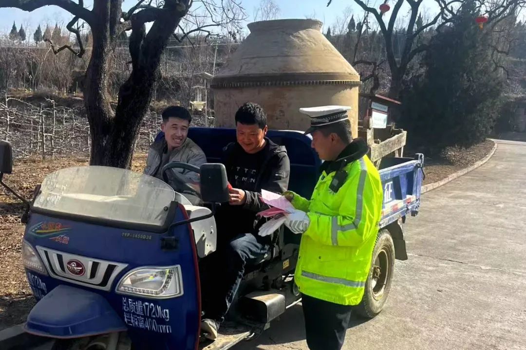 “老鄉(xiāng),咱這農(nóng)用車后面可不能載人??!”“大叔,騎電動(dòng)車下地干活一定要記得戴頭盔。”在花牛鎮(zhèn)南山蘋(píng)果基地的產(chǎn)業(yè)路上,麥積分局交警大隊(duì)花牛中隊(duì)輔警段增榮和同事向廣大果農(nóng)進(jìn)行交通安全宣傳。