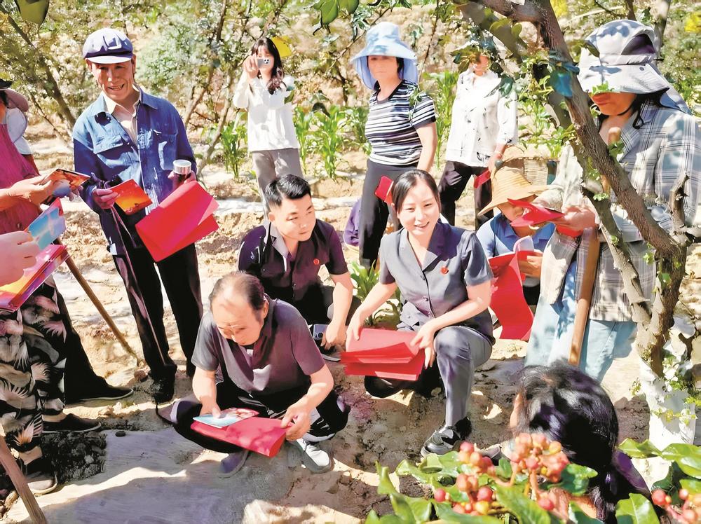 安化法庭干警走進花椒種植園,與村民圍坐交流,現(xiàn)場答疑解惑。 武都區(qū)法院供圖