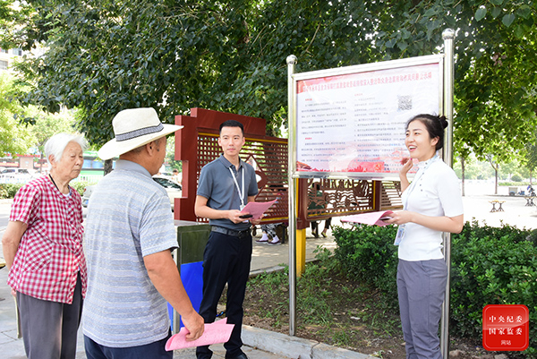 河北省邯鄲市永年區(qū)紀委監(jiān)委在村委會、醫(yī)院、公園等公眾場所懸掛公示牌,向群眾發(fā)放告知書,對群眾身邊腐敗和作風問題整治內容進行現(xiàn)場講解,提高群眾知曉率。(河北省邯鄲市永年區(qū)紀委監(jiān)委 朱照坤 攝)