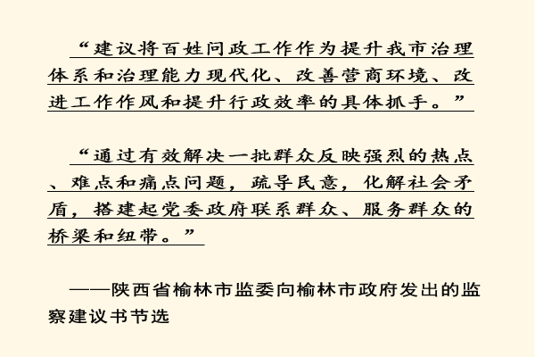 2019年12月6日,榆林市監(jiān)委制發(fā)的《關(guān)于解決百姓問政工作中存在問題的建議》的監(jiān)察建議書送達(dá)榆林市政府,并交于市長本人。