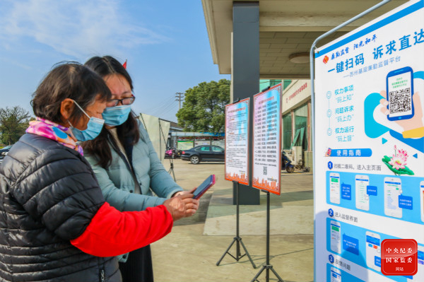 江蘇省張家港市紀(jì)委監(jiān)委聚焦做實(shí)監(jiān)督,創(chuàng)新信息化監(jiān)督平臺建設(shè),用“碼上監(jiān)督”推動(dòng)監(jiān)督下沉、落地見效,維護(hù)群眾利益。圖為該市紀(jì)檢監(jiān)察干部在南豐鎮(zhèn)永聯(lián)村指導(dǎo)群眾掃碼使用基層廉勤監(jiān)督平臺。(江蘇省張家港市紀(jì)委監(jiān)委 供羅燕 攝)