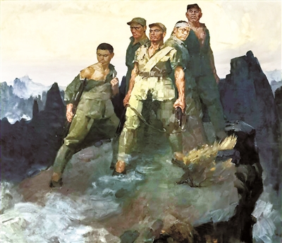 有專家評(píng)價(jià)說,畫家選擇了英雄們跳崖犧牲前的一瞬間,深入刻畫人物的英雄氣概。在統(tǒng)一的氣勢(shì)中,不同人物的動(dòng)作、眼神又巧妙地富有變化,作為背景的峻峭雄偉的山峰與人物群像融為一體,猶如刻在大自然中與世長(zhǎng)存的紀(jì)念碑。(一凡)