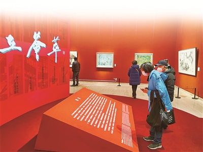 20世紀(jì)50年代以后,反映熱火朝天生活的藝術(shù)樣式漸漸成為主流,畫家們開始在傳統(tǒng)筆墨中融入新的風(fēng)格。江蘇省美術(shù)館展廳展出了江蘇藝術(shù)群體“新金陵畫派”的作品。新金陵畫派是20世紀(jì)中國(guó)畫壇的重要畫派之一,畫家們倡導(dǎo)“思想變了,筆墨就不能不變”的藝術(shù)理念,在繼承傳統(tǒng)的基礎(chǔ)上以新筆墨反映時(shí)代的巨大變化。