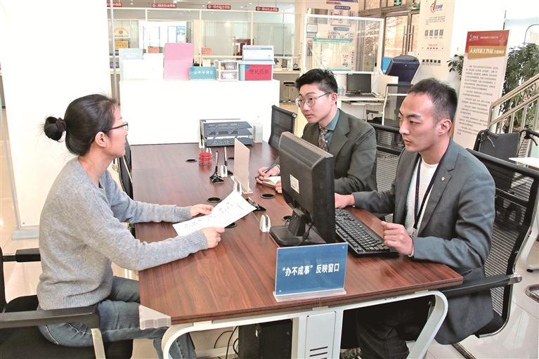 山東省青島市黃島區(qū)紀(jì)委監(jiān)委聚焦漠視群眾合理訴求、推諉扯皮“打太極”、不擔(dān)當(dāng)不作為等不正之風(fēng),“懲治防”一體發(fā)力,堅(jiān)決糾治不擔(dān)當(dāng)不作為問題。圖為該區(qū)紀(jì)檢監(jiān)察干部在“辦不成事”反映窗口向群眾了解有關(guān)情況。杜翔宇 攝