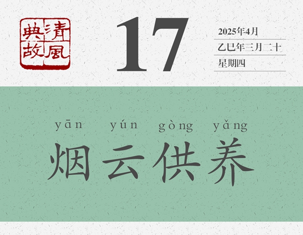 煙云,即山水風(fēng)景。供養(yǎng),即陶冶滋養(yǎng)。“畫中煙云供養(yǎng)”的原意是,黃公望和米友仁之所以貌如童顏,神明不衰,是因?yàn)槠渖剿嬛袩熡隄鳚鳌⒈§F繚繞的意境滋養(yǎng)了他們。后世即以“煙云供養(yǎng)”為典,喻美好的自然環(huán)境,可以舒暢人的心情,撫慰人的精神。這就是為什么人們把自然環(huán)境好的地方稱作“養(yǎng)生之地”的原因。錢大昕《梁山舟前輩八十》詩:“占得西湖第一峰,煙云供養(yǎng)幾千重。門懸曼碩山舟字,人識坡公笠屐容。”