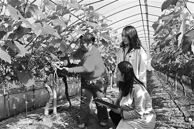 江蘇省東臺(tái)市紀(jì)委監(jiān)委開展護(hù)航農(nóng)村特色產(chǎn)業(yè)發(fā)展專項(xiàng)監(jiān)督,深入查糾鄉(xiāng)村振興項(xiàng)目資金監(jiān)管和涉農(nóng)補(bǔ)貼發(fā)放等方面存在的問題。圖為該市紀(jì)委監(jiān)委工作人員在葡萄種植大棚走訪了解相關(guān)情況。王茜 攝