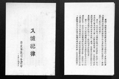 1949年5月,華東軍區(qū)司令部印發(fā)的《入城紀(jì)律》。桂星星 供圖