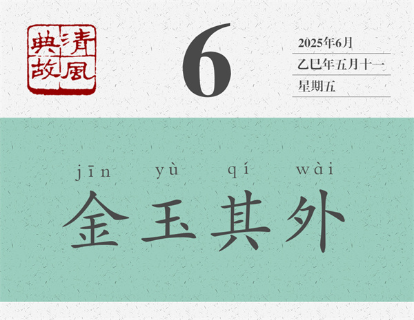 “金玉其外”原是說柑橘的,指其徒有其表,后以之為典,喻人表里不一,名不副實。如民間所謂之“驢糞蛋外面光”,亦如李寶嘉《官場現(xiàn)形記》所言之“金漆飯桶”。海瑞《主簿參評》:“茍不盡分稱職,金玉其外而敗絮其內也……”