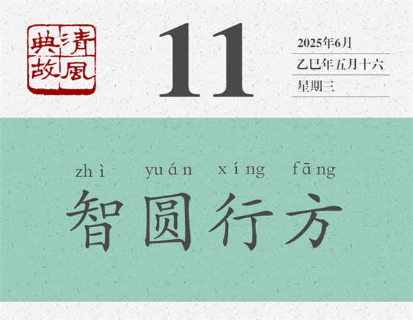“智圓行方”說的是思與行的關(guān)系問題。通俗地說,就是腦子要靈活,手腳要規(guī)矩。明人張居正《襄毅楊公墓志銘》:“維公之德,智圓行方,忠不近名,言不泥常。”思與行,看起來各自獨立,實際上密不可分。任何事情,都得想好了再做。怎樣才能想好呢?那就得把自己能想到的各種可能都拿出來分析分析、比較比較;如果還覺得不夠,那就得跟別人交流,跟別人溝通。同樣,做任何事情,都得一以貫之。只要認準(zhǔn)了、認定了,就要堅持做下去,不能今天這樣明天那樣,今天聽你的明天聽他的;也不能搖搖擺擺,走走停停。久久為功,勝利才會向你招手。