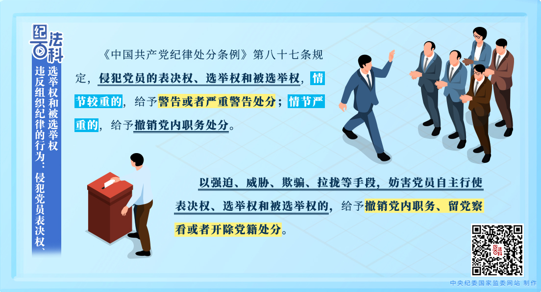 從各地紀委監(jiān)委通報的典型案例看,一些黨員干部和公職人員通過各種手段侵犯黨員的表決權(quán)、選舉權(quán)和被選舉權(quán),均受到嚴肅處理。