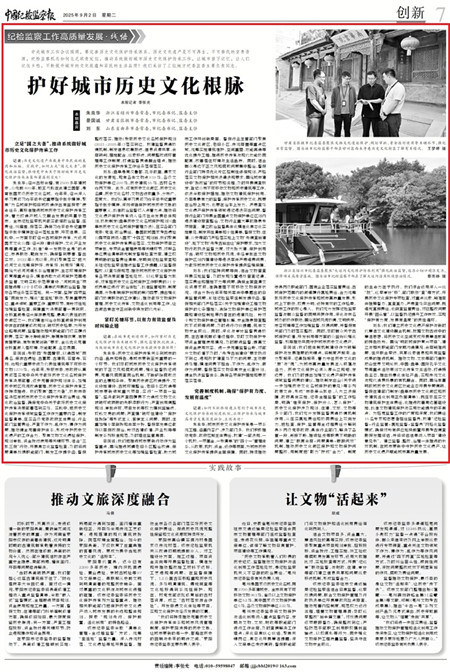 景國(guó)誠(chéng):我們把體制機(jī)制建設(shè)作為破解保護(hù)與發(fā)展難題的關(guān)鍵點(diǎn),將制度嚴(yán)起來、合力聚起來、紀(jì)律挺起來,著力守住歷史文化的“根”與“魂”,為城市高質(zhì)量發(fā)展注入底蘊(yùn)與活力。歷史文化保護(hù)必須從源頭立規(guī)矩、定邊界。我們及時(shí)提出加強(qiáng)文化遺產(chǎn)保護(hù)傳承領(lǐng)域監(jiān)督問責(zé)的建議,推動(dòng)制定出臺(tái)《關(guān)于進(jìn)一步加強(qiáng)歷史文化名城保護(hù)的意見》等系列政策文件,形成“市委牽頭抓總、人大立法保障、政府具體實(shí)施、紀(jì)委全程監(jiān)督”的工作格局,明確“誰來保護(hù)、保護(hù)什么、怎么保護(hù)”。歷史文化保護(hù)涉及規(guī)劃、住建、文旅、文物等多個(gè)部門,我們充分發(fā)揮監(jiān)督貫通協(xié)調(diào)機(jī)制作用,從壓實(shí)屬地責(zé)任和協(xié)同責(zé)任上雙向發(fā)力,把檢查、保護(hù)、監(jiān)管等全過程責(zé)任分解到縣鄉(xiāng)兩級(jí)黨委政府、具體行業(yè)部門,解決了各管一段、銜接不暢、推諉扯皮等職責(zé)不明晰的問題,建立“聯(lián)席會(huì)商+問題清單+跟蹤問效”機(jī)制,推動(dòng)歷史文化街區(qū)保護(hù)和文物保護(hù)問題整改,用制度把“散力”擰成“合力”。制度的生命力在于執(zhí)行。我們綜合運(yùn)用深入一線“挖”、巡察審計(jì)“移”、部門聯(lián)動(dòng)“查”等方式,開展歷史文化保護(hù)專項(xiàng)檢查,對(duì)重點(diǎn)線索、疑難案件掛牌督辦、直查直辦,嚴(yán)肅查處突出問題,既追究直接責(zé)任,也倒查監(jiān)管責(zé)任,對(duì)已整改問題開展“回頭看”,以監(jiān)督執(zhí)紀(jì)提升工作質(zhì)效,實(shí)現(xiàn)“保護(hù)有力度、發(fā)展有溫度”的良性循環(huán)。