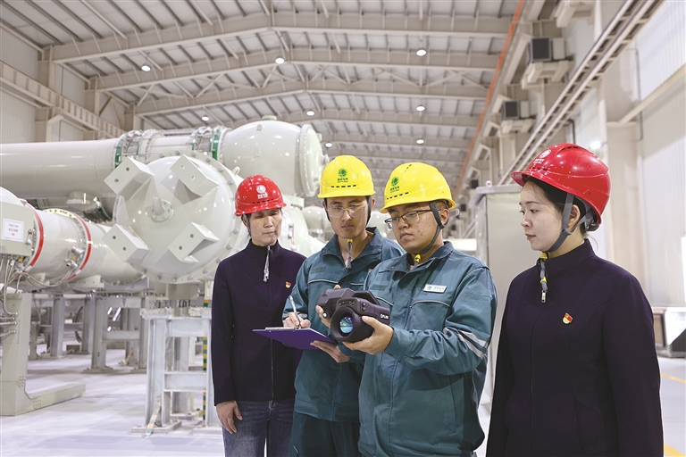 國網(wǎng)寧夏電力有限公司紀(jì)委以有力監(jiān)督推動(dòng)“寧電入湘”特高壓線路工程投運(yùn)后各項(xiàng)工作平穩(wěn)有序推進(jìn)。圖為近日,該公司紀(jì)委工作人員在國網(wǎng)寧夏超高壓公司中寧換流站開展現(xiàn)場監(jiān)督檢查。王天鵬 攝