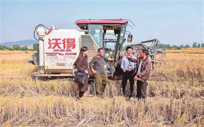 糧食安全是“國之大者”。安徽省含山縣紀(jì)委監(jiān)委聚焦高標(biāo)準(zhǔn)農(nóng)田建設(shè)管理中的突出問題開展一線走訪,推動(dòng)“糧田”變“良田”。圖為該縣紀(jì)檢監(jiān)察干部在環(huán)峰鎮(zhèn)城北村水稻收割現(xiàn)場了解相關(guān)情況。歐宗濤 攝