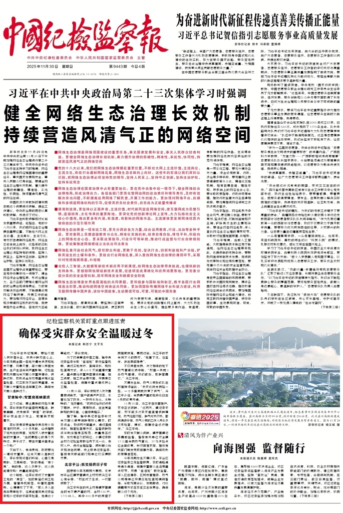 《中國(guó)紀(jì)檢監(jiān)察報(bào)》2025年11月30日(第1版)