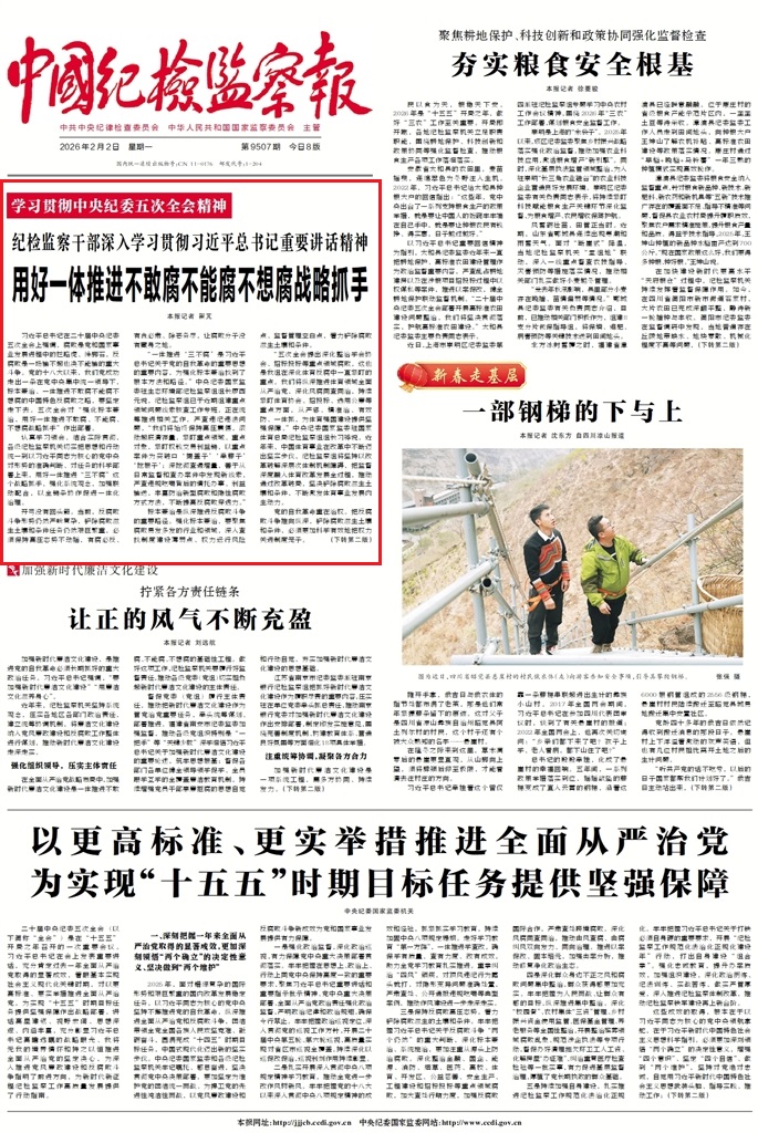 《中國紀(jì)檢監(jiān)察報》2月2日第1版