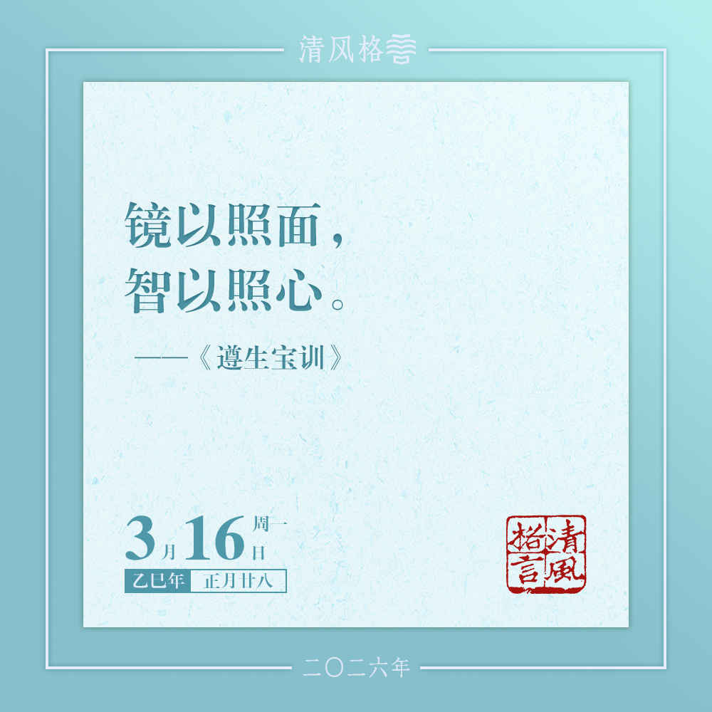 “鏡以照面,智以照心”,鏡明則垢不染,容貌便看得清楚;智明則心不染,遇事則看得透徹。事在人為,人以智行,智行則客觀、審慎,能夠看透本質(zhì),明辨是非曲直。像吳隱之這樣“處貪泉而覺爽”,一個真正明智的人,內(nèi)心擁有純凈與清醒,是不會被欲望和雜念所迷惑的。智明則心能定,心定則萬事明。