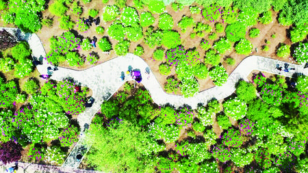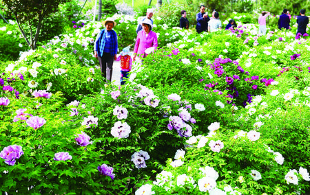 游客在牡丹園游覽