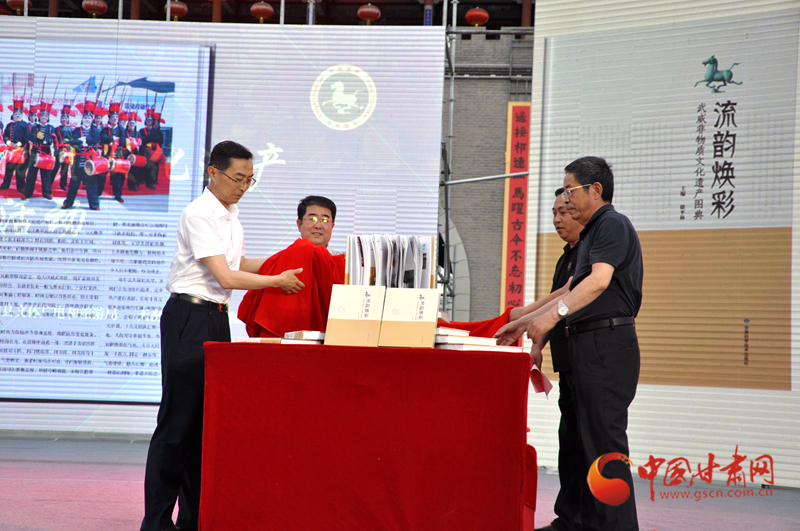 活動(dòng)中,《流韻煥彩——武威非物質(zhì)文化遺產(chǎn)圖典》揭幕并首發(fā)?!读黜崯ú?mdash;—武威非物質(zhì)文化遺產(chǎn)圖典》是由武威市文體廣電和旅游局組織編寫(xiě),讀者出版集團(tuán)旗下的甘肅科學(xué)技術(shù)出版社出版,先后歷時(shí)5載。該圖典將散落在武威廣袤大地上的璀璨珍珠串連起來(lái),將牽動(dòng)著記憶深處的濃濃情思匯聚起來(lái),展示了一個(gè)歷史武威、一個(gè)文化武威、一個(gè)多彩武威,是解讀武威的最好途徑。該圖典共收錄了84個(gè)非遺項(xiàng)目,81位項(xiàng)目代表性傳承人,用2000多張圖片和文字介紹,全方位、多角度展示了武威市非遺項(xiàng)目的獨(dú)特性、活態(tài)性、傳承性、流變性、綜合性、民族性、地域性等基本特點(diǎn)。該圖典最大的亮點(diǎn),就是在國(guó)家級(jí)、省級(jí)項(xiàng)目中融入互聯(lián)網(wǎng)思維,加入二維碼視頻鏈接,對(duì)項(xiàng)目進(jìn)行動(dòng)態(tài)視頻展示,讓《圖典》不僅可看、可讀,而且能說(shuō)會(huì)動(dòng),能唱會(huì)跳,實(shí)現(xiàn)了非遺項(xiàng)目活態(tài)傳承的創(chuàng)新。