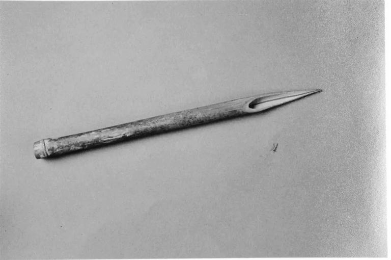1972年,人們?cè)诟拭C武威張義堡西夏遺址中,發(fā)掘出土了這支西夏竹筆,同時(shí)出土的還有其他兩支竹筆。據(jù)推測(cè),它們是12世紀(jì)西夏人制作使用的硬筆。