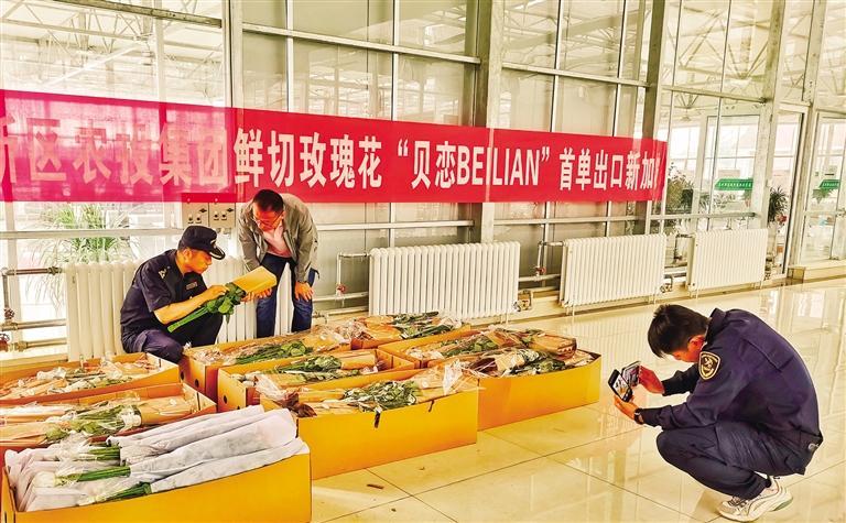 海關工作人員檢驗檢疫新區(qū)鮮切玫瑰花 張建平 攝