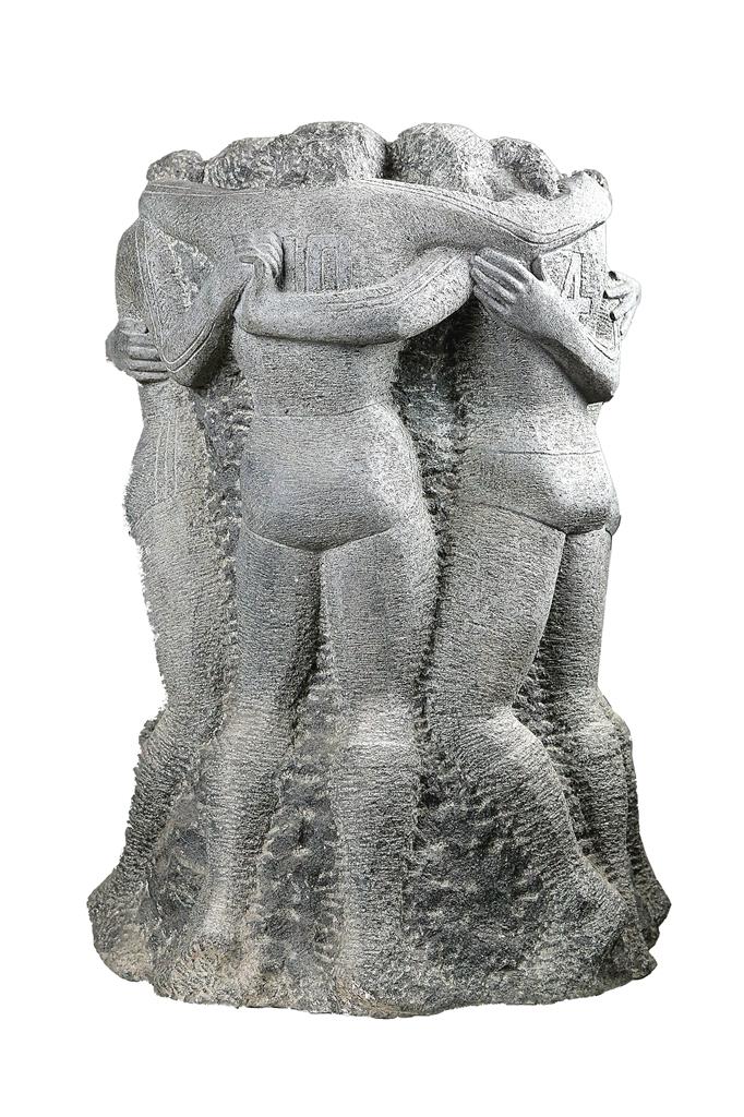 另一件《雄冠》為花崗巖材質(zhì)雕塑作品,是何鄂先生于20世紀(jì)80年代創(chuàng)作的精品,表現(xiàn)了中國(guó)女排榮獲三連冠時(shí)隊(duì)員們緊緊地?fù)肀г谝黄鸬臍v史時(shí)刻,充分展示了“祖國(guó)至上、團(tuán)結(jié)協(xié)作、頑強(qiáng)拼搏、永不言敗”的女排精神,生動(dòng)詮釋了奧林匹克精神,展現(xiàn)可信可愛可敬的當(dāng)代中國(guó)形象,向世界講述了中國(guó)體育發(fā)展的故事,以藝術(shù)精品譜寫出團(tuán)結(jié)就是勝利的鏗鏘華章。