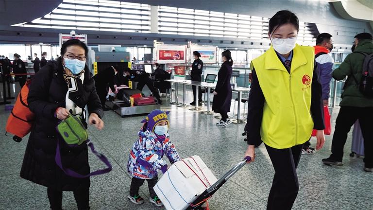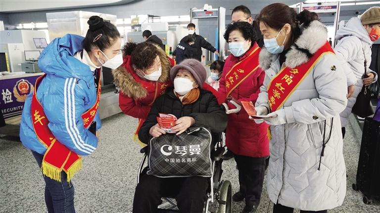 在候車廳里,蘭州西站黨團員,發(fā)放春運期間列車開行變化、購票日歷、疫情防控等相關(guān)內(nèi)容“一卡通”服務(wù)卡片,為旅客提供便民咨詢、候車區(qū)域引導(dǎo)、重點旅客幫扶等,切實為節(jié)前旅客送溫暖、獻愛心。同時,候車廳設(shè)置“馨路同行”行李搬運服務(wù)崗,黨團員為行動不便、攜帶行李較多旅客推送行李至車廂,開展暖冬志愿服務(wù),讓旅客回家的路更溫暖、更順暢。