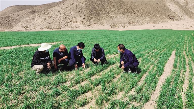 中國甘肅網(wǎng)5月11日訊 據(jù)蘭州日報報道記者 程珊珊 文/圖)走進(jìn)皋蘭縣石洞鎮(zhèn)鎮(zhèn)東灣村的田間地頭,只見綠油油的麥田分布在村道兩旁,蘊含綠色的期盼。皋蘭縣農(nóng)技中心主任王朝軍又下地了,帶著小鏟子、鋼卷尺等幾件從不離身的家伙。走進(jìn)麥田觀察根系、測量株高,細(xì)心查看苗情、墑情、肥情以及病蟲害情,而他的身邊還圍著不少村里的種糧大戶。